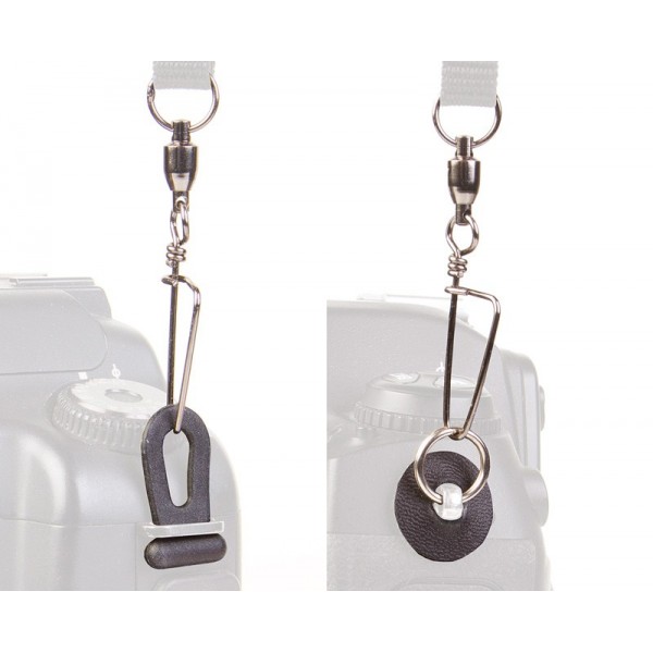 Compatibles avec la plupart des sangles photo, ces crochets permettent un détachement rapide tout en assurant une tenue fiable. Pivot tout métal empêchant la torsion de la sangle.