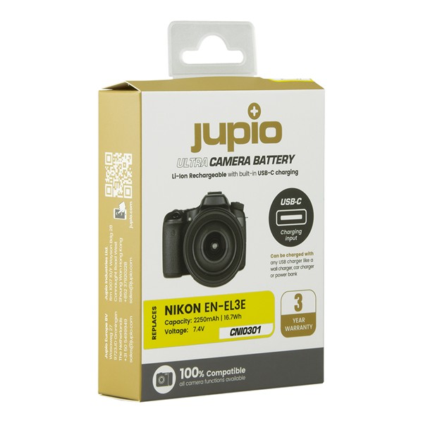 Batterie JUPIO Nikon EN-EL3E avec entrée USB-C