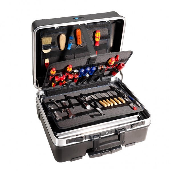 - Intérieur module: panneau porte-outils amovible dans la coque supérieure avec porte-outils à 3 modules pour des outils de max. Ø 21 mm sur ses faces avant et arrière et un panneau de recouvrement amovible pour la coque inférieure avec porte-outils à 3 modules pour des outils de max. Ø 28 mm